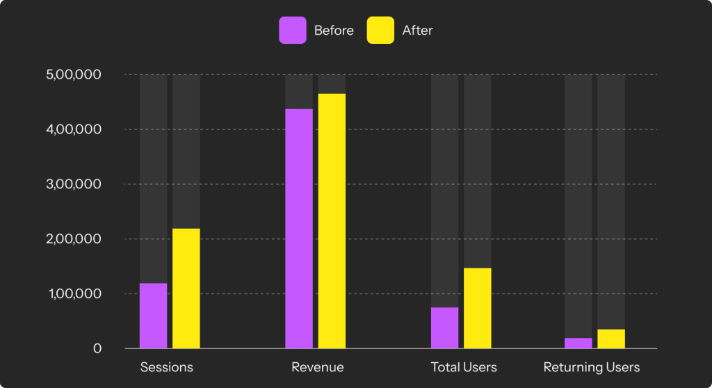 - +103.67% Returning Users - We didn’t just attract new visitors, we got them coming back for more.